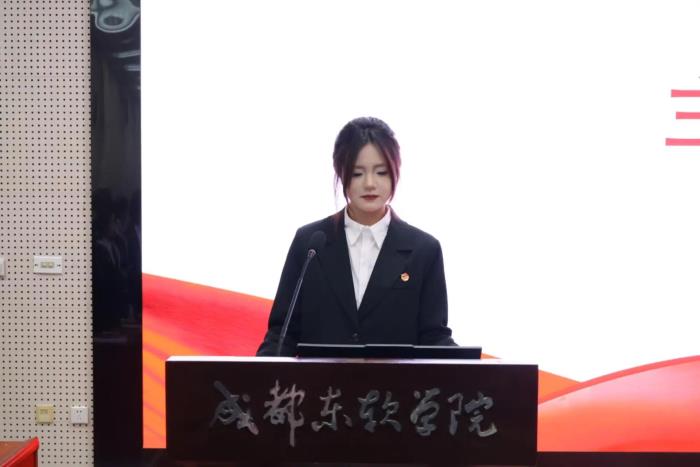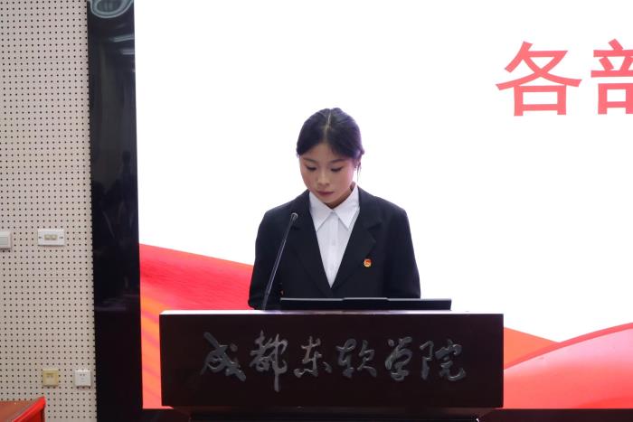 成都东软学院团委书记蔡金材老师提到校团委直属部门是青少年成长的“练兵场”,过去一年,办公室、组织部、宣传部各展所长,以实干服务同学、积累经验。此次大会完成新一届科长任命,蔡金材老师希望全体成员心往一处想、劲往一处使,以责任担当诠释青年使命。