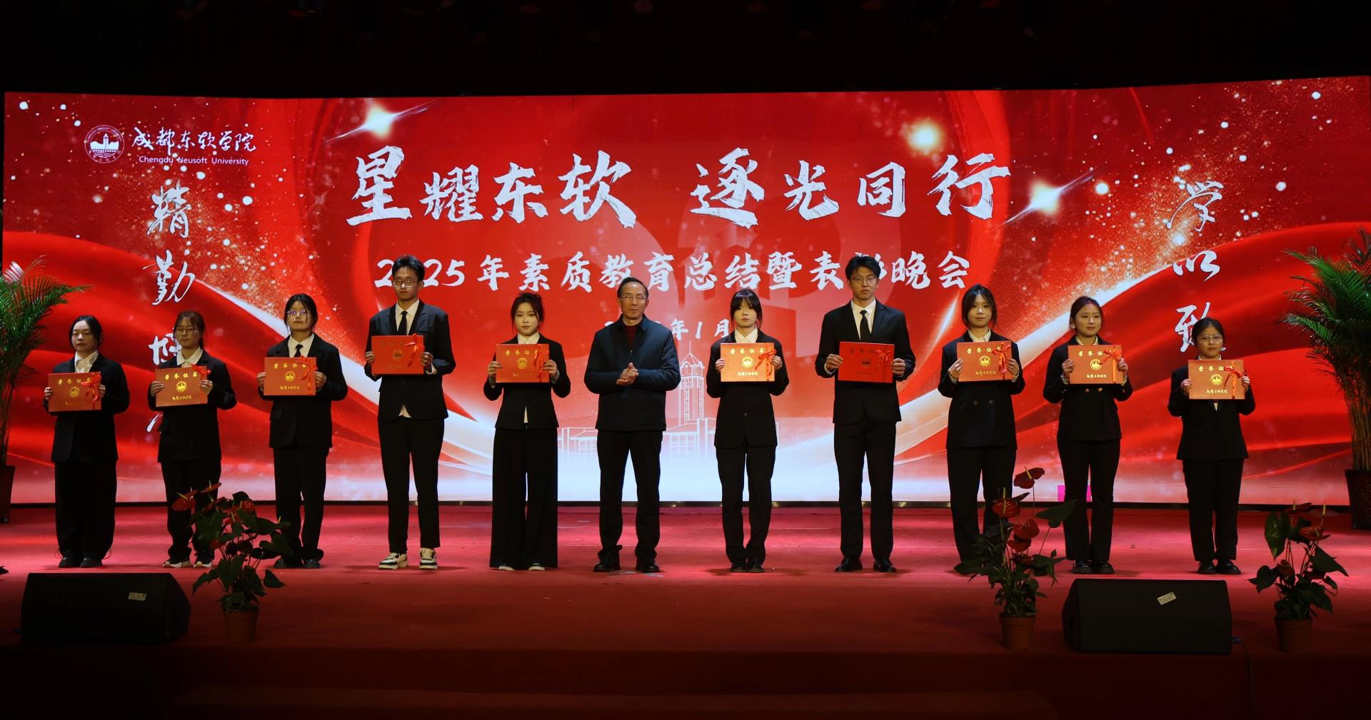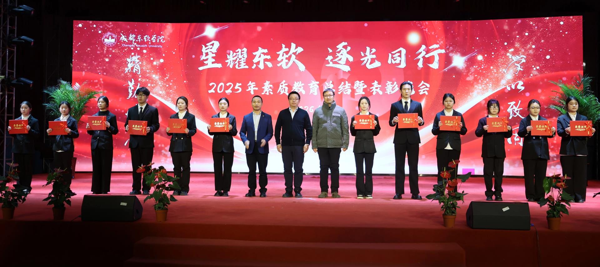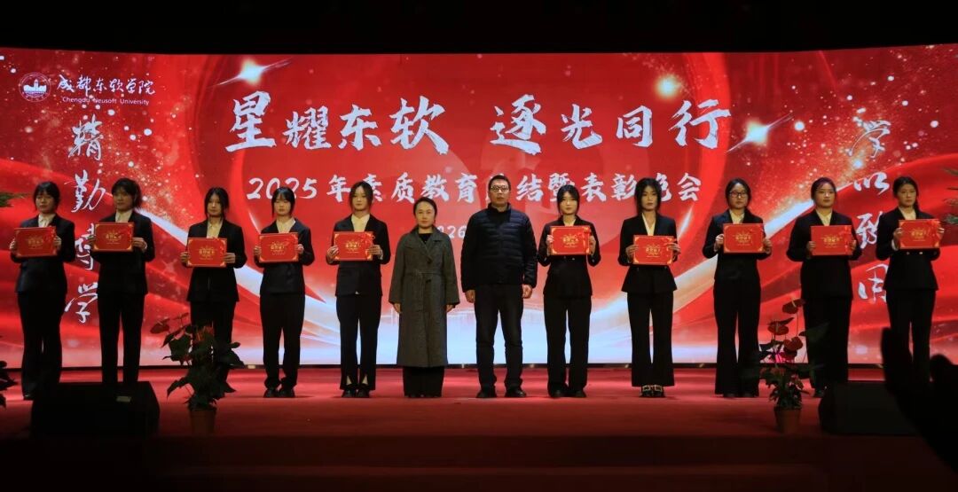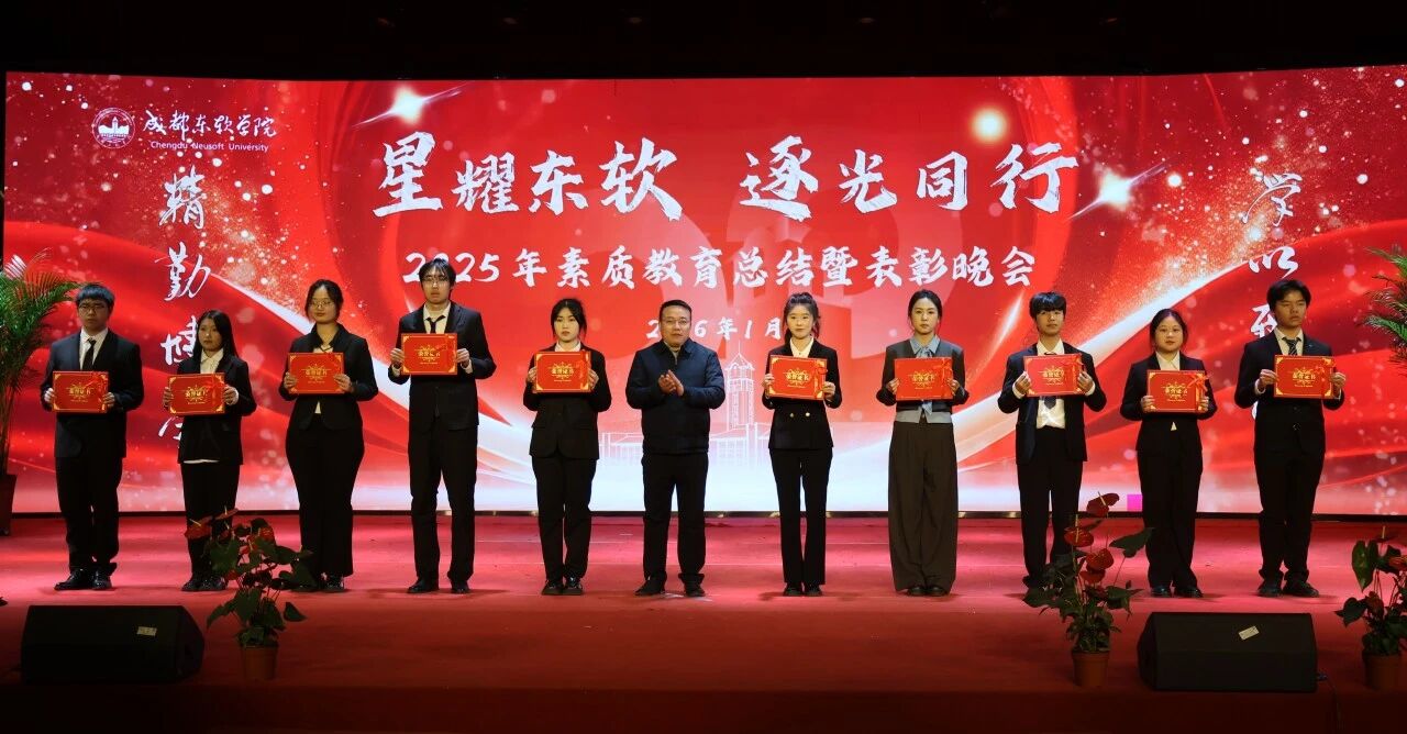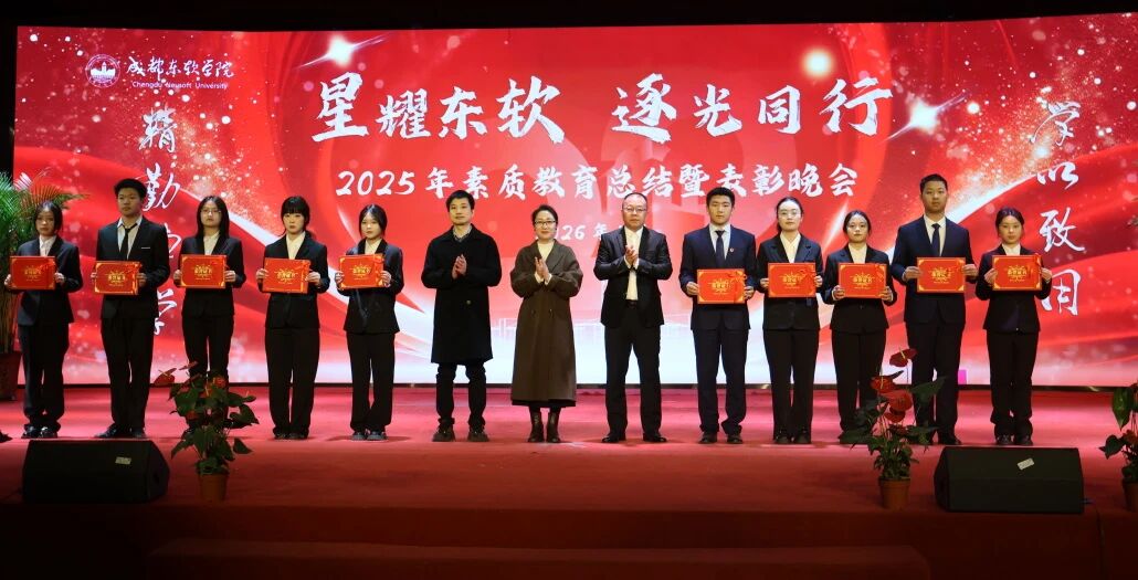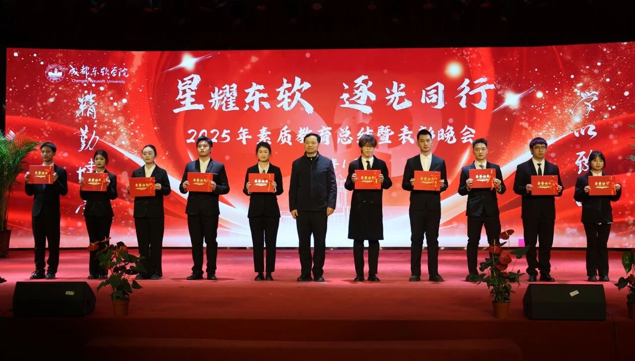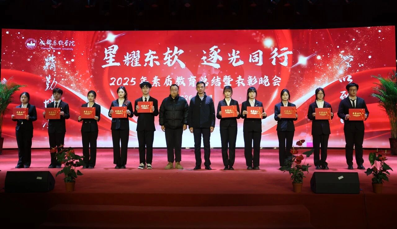 当冬日的星光邂逅东软的校园,当拼搏的汗水凝结成荣耀的勋章,成都东软学院2025年素质教育总结暨表彰晚会于2026年1月14日在A8二楼顺利展开。这场盛典不仅是对过去一年素质教育成果的全面复盘,更是对东软学子青春风采与实践精神的盛大礼赞。